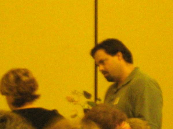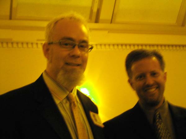 We milled about, catching up with more folks, for another forty-five minutes or so after the program was over. Then █████ touched my arm and suggested, in that wise way she has, that we not be the last ones out of the banquet hall. I looked around, and the crowd had indeed thinned noticeably. We began working our way toward the exit, but there were still enough people stopping us to say hello that we didn't make it outside for another hour.