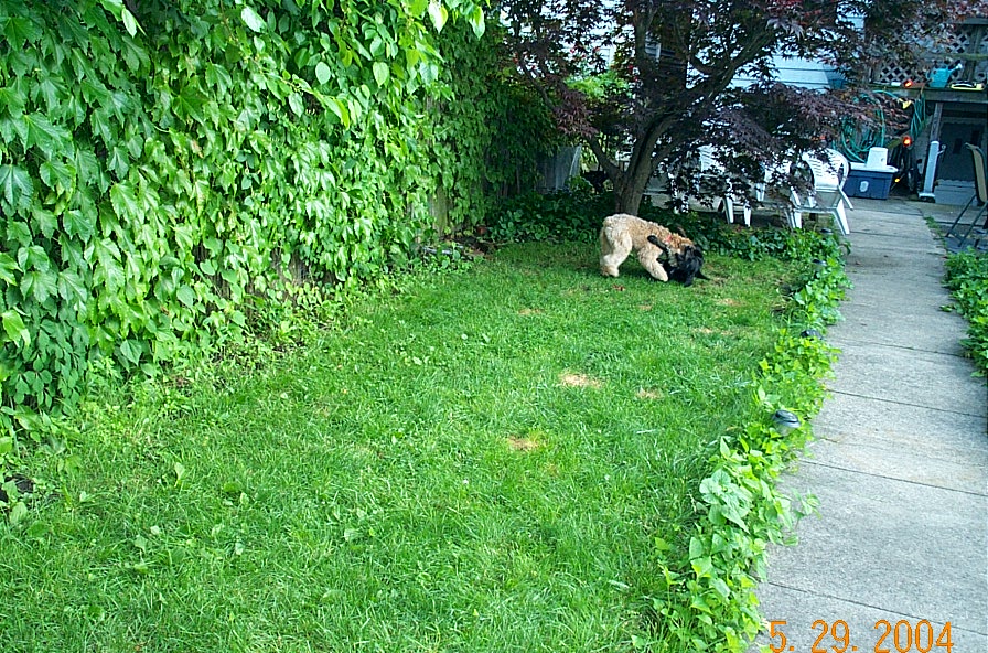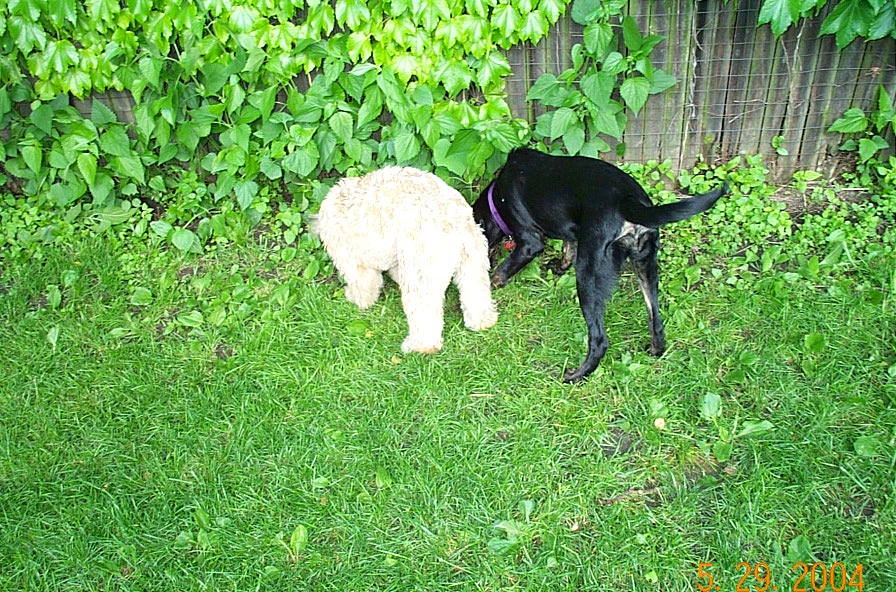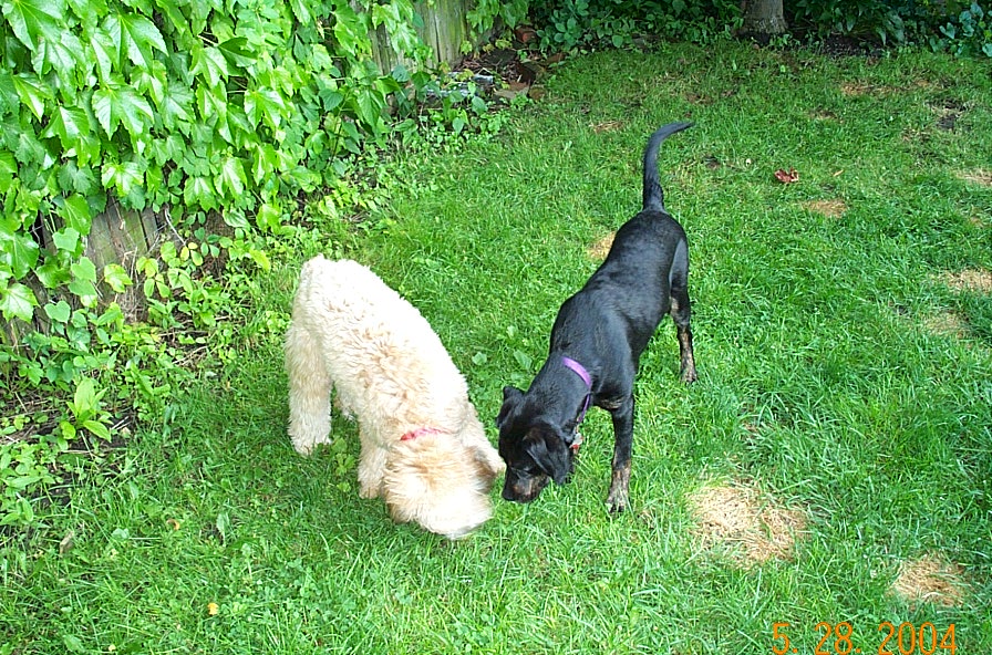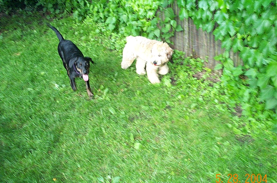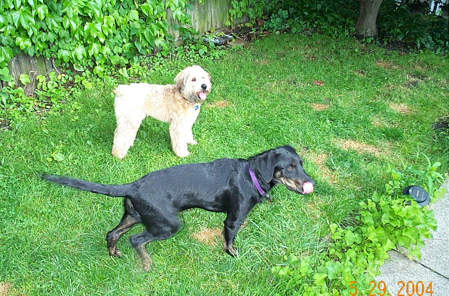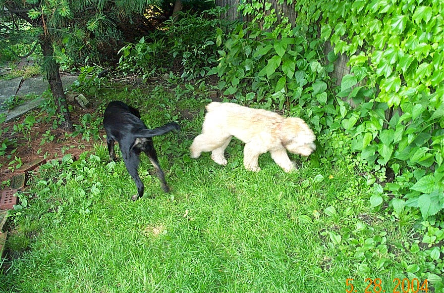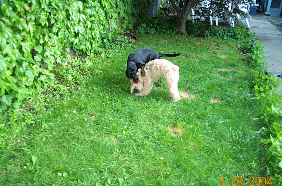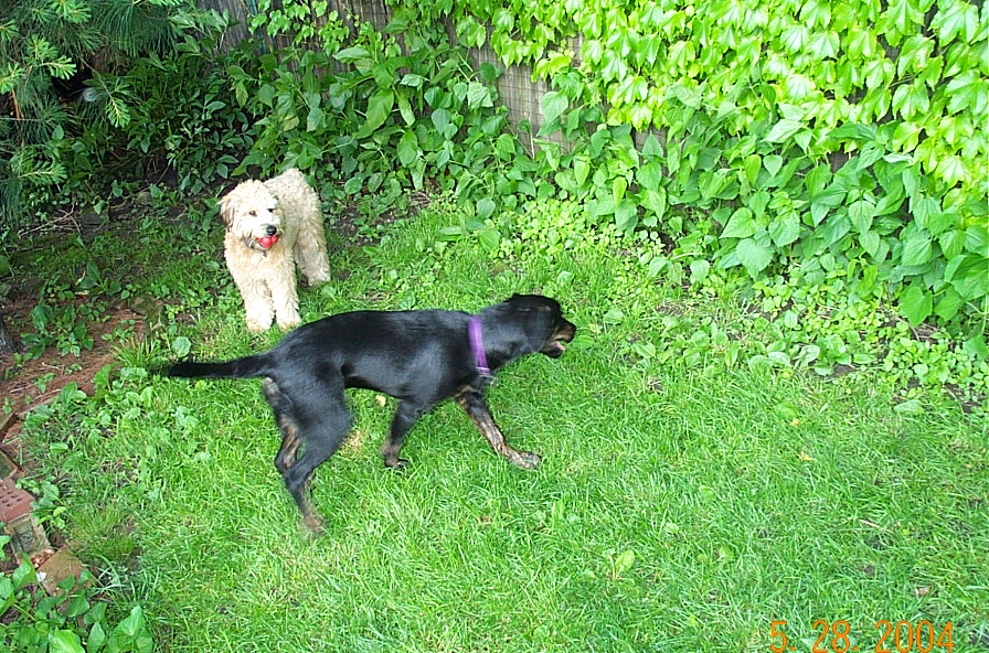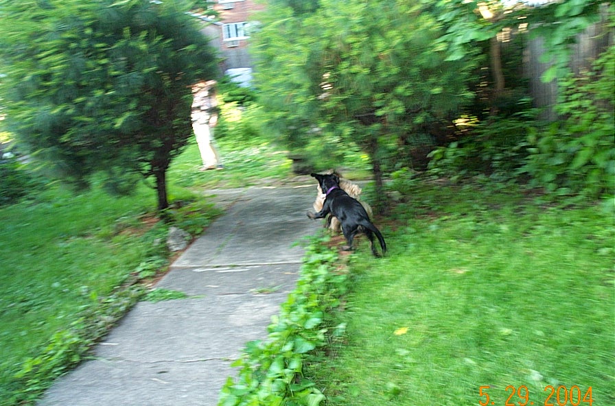 Nyla is Ella's neighbor from upstairs. They battled evildoers and a red rubber ball in the back yard yesterday evening.