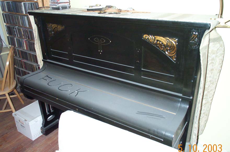 Well, the hired hand set straight to work—without putting plastic sheeting up anywhere. The dust is all over every room in the house. There's a cleaning lady here now, at the contractor's expense, but of course she's not doing more than a surface job. We're cleaning the really tough stuff, like the hundreds of books and CDs, the stereo, the cushions from every sit-upon-able piece of furniture. Our skin is gritty. We need the goddamn EPA in here, not some poor old lady who's being paid less than minimum wage to be here on Mother's Day.