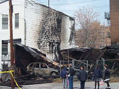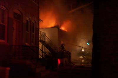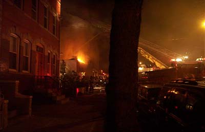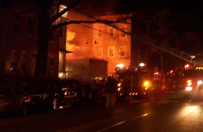 The white building to the left, though, had just barely been rehabbed, and the new tenants had just moved in. The fire really messed up the top-floor apartment, though the lower floors were pretty much ruined by water damage from the firefighting efforts. The firemen dragged hoses in through the front door of the house, then sprayed water from the second-floor windows down onto the roof of the garage. It was a surreal sight.